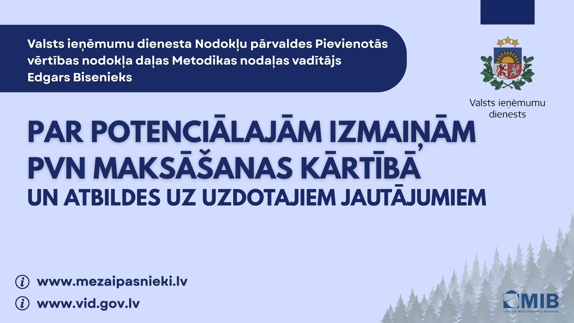 Latvijas Meža īpašnieku biedrības kopsapulces laikā tika pieaicināts Valsts ieņēmumu dienesta Nodokļu pārvaldes Pievienotās vērtības nodokļa daļas Metodikas nodaļas vadītājs Edgars Bisenieks, lai skaidrotu iespējamo situācijas attīstību un izmaiņas saistībā ar reverso PVN, kas varētu stāties spēkā, ja attiecīgie grozījumi tiks pieņemti.