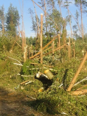 Nopostītājā mežaudzē pārsvarā auga apmēram 60 gadus vecas priedes, nedaudz bērzs. Gandrīz visi augošie koki ir salauzti, kas nozīmē daudzu tūkstošu latu zaudējumus īpašniekam. Šādā audzē jāveic bojāto koku izvākšana, kas ir sarežģīts un dārgs process, kura izmaksas šādā situācijā var pārsniegt iegūto kokmateriālu vērtību.
