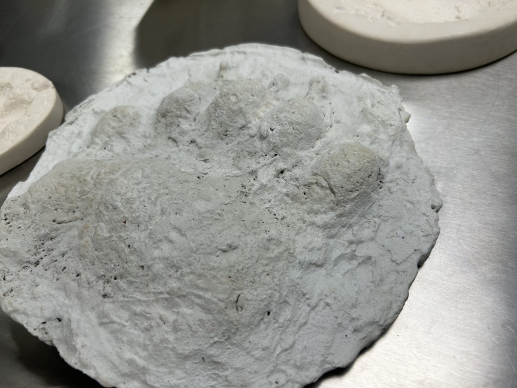 Ģipša atlējums no lāča ķepas nospieduma, kas agrāk bija galvenais informācijas avots lāču monitoringā.