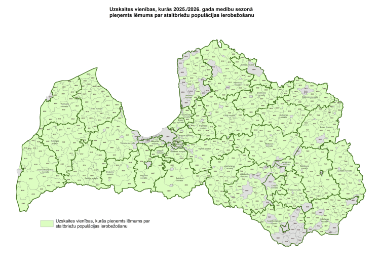 Pamatojoties uz datiem par staltbriežu postījumiem, Valsts meža dienests ir noteicis teritoriālās uzskaites vienības, kur staltbriežu skaitu ir plānots ierobežot. Konkrētais atvieglojums medību organizēšanā būs spēkā lielākajā daļā Latvijas teritorijas, izņemot daļu Latgales, Vidzemes un Sēlijas, kā arī daļu no Jūrmalas un Tukuma apkārtnes. (Precizēta karte zemāk).