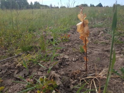 Sausuma dēļ bojāts bērzu stādījums