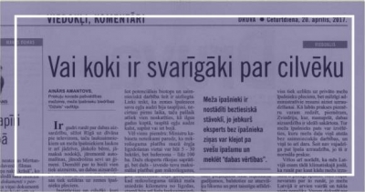 Vēlos arī norādīt, ka mēs Latvijā esam tādā klimatiskajā joslā, ka runāt par kaut kādu mežu izzušanu ir pilnīgi aplami. Mēs vispār nevaram par to runāt, jo mežu Latvijā paliek arvien vairāk un tukša vieta mums nepaliks. Varam diskutēt par mežu kvalitāti, bet arī tur valsts varētu vairāk stimulēt tos meža īpašniekus, kuri iegulda savus līdzekļus un darbu, lai mūsu Latvijā būtu kvalitatīvs mežs. Mums taču nav sagandētas dabas vērtības, manuprāt, viss notiek pietiekoši labi, taču vajag atcerēties, ka koki nedrīkst būt svarīgāki par cilvēku.
