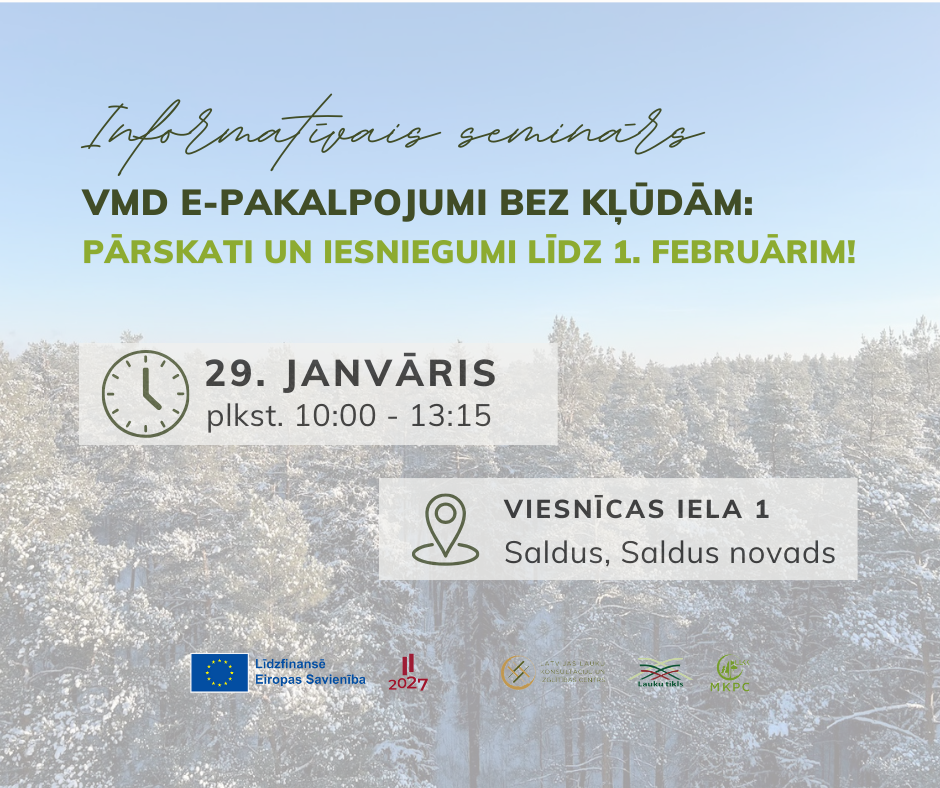MKPC informē, ka 29. janvārī no plkst. 10:00 - 13:00, Saldus nodaļā (Viesnīcas iela 1, Saldus) norisināsies informatīvs seminārs.